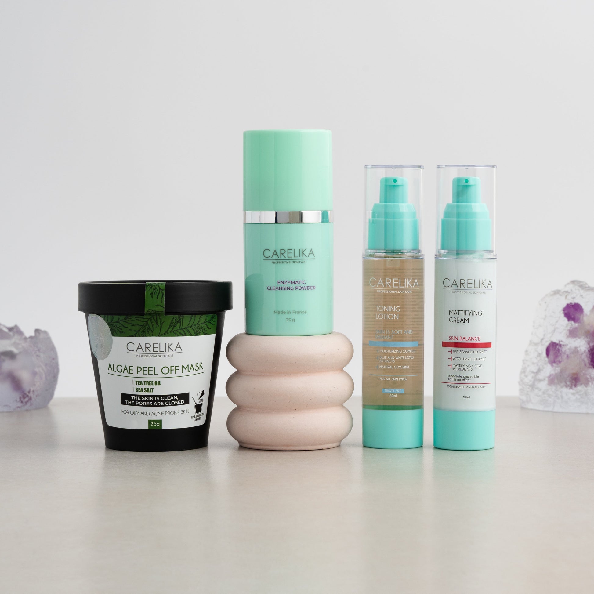 Do you have acne-prone skin? Carelika brings you a holistic approach to a scientifically proven combination of facial treatments to control nasty acne outbreaks. This kit helps you with an acne-fighting regimen that begins with cleansing your skin to remove dead cells and impurities. After cleansing you need toning. Our toning liquid hydrates every cell of your skin, and balances excess sebum production leaving it soft and soaking it with essential nutrients. Then you need a face mask that has all the goodness of tea tree oil which is antibacterial and perfect for acne-prone skin. You can simply end the ritual with a mattifying cream that nourishes your skin.