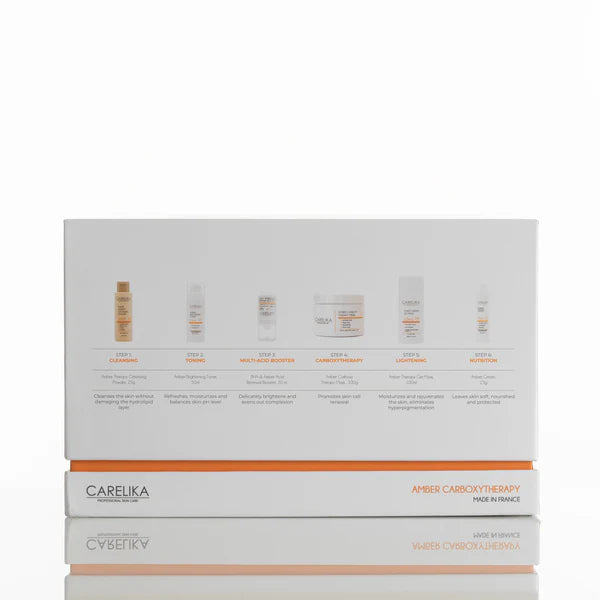 CARELIKA Amber Carboxy Treatment Kit is an advanced skincare system designed to rejuvenate, detoxify, and oxygenate the skin. Combining the power of BHA, amber acid, niacinamide, and carbon dioxide, this treatment stimulates cellular renewal, improves microcirculation, and enhances skin clarity. The innovative two-phase therapy promotes a firmer, more radiant complexion by minimizing the appearance of pores, pigmentation, and signs of aging while restoring hydration and balance. Suitable for both aesthetic and professional skincare, this treatment delivers immediate and long-term benefits, leaving the skin revitalized, refreshed, and glowing.