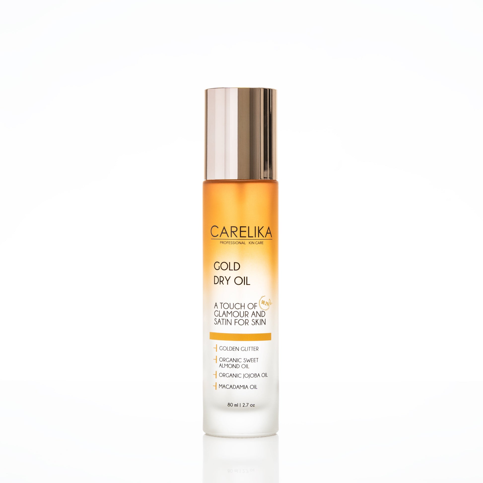 Gold dry oil for body and hair. The golden glitters provides shine and glamour to the skin. Argan and organic Jojoba oils in the composition nourishes and softens the skin. Organic Almond and Macadamia oils enriches the skin and with vitamins and fatty acids, restores dry, irritated skin, stops wrinkle formation processes. These oils promotes hair growth, making them flexible and shiny. Vegetable glycerin has the functions of a protective barrier. Hair and skin are nourished and more radiant than ever!