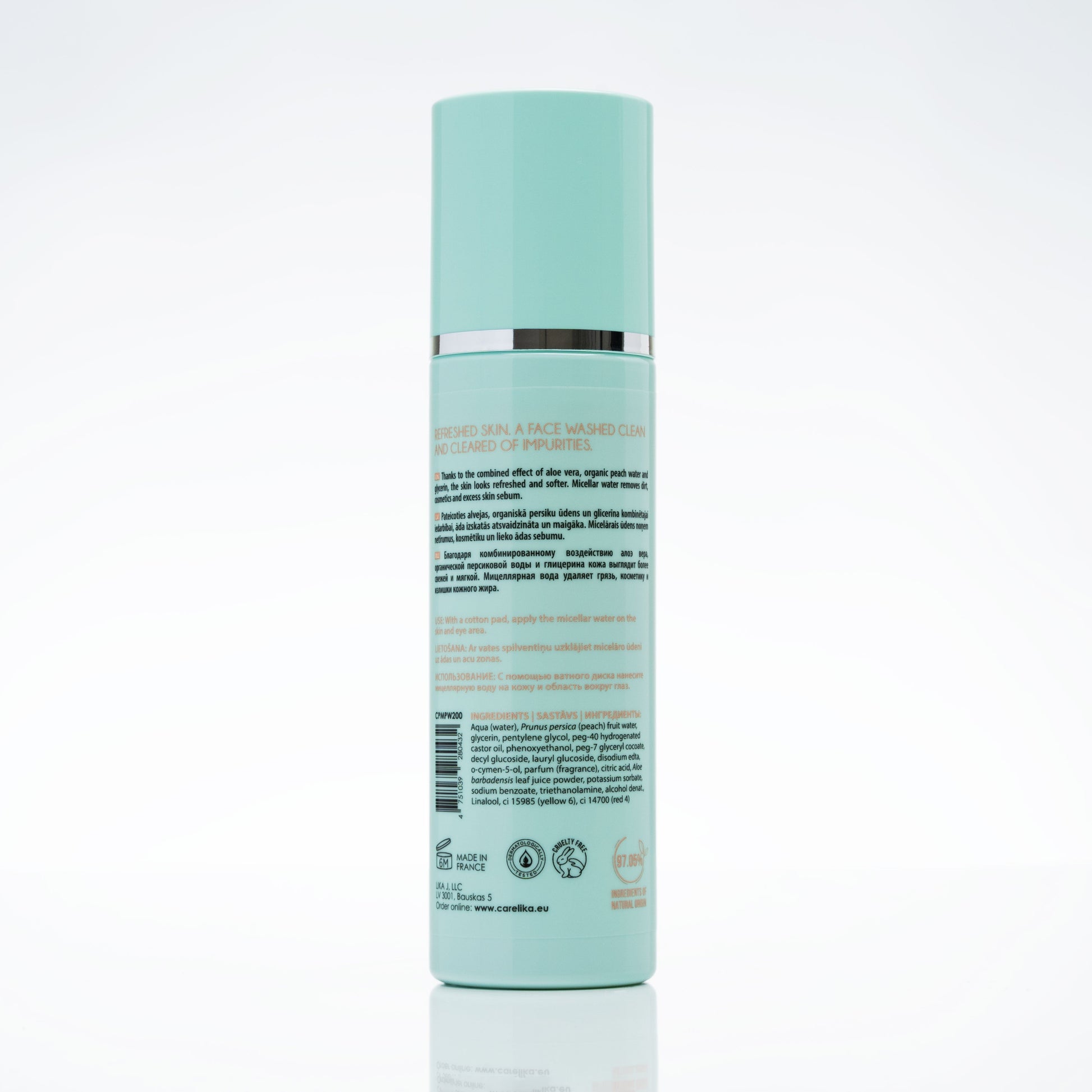 CARELIKA Micellar Peach Water is a carefully crafted innovative cleanser. It is in the form of structured water that has small spherical, crystalline microscopic micelles formed with the help of essential fatty acids. These micelles envelop the remains of stubborn oil, grease, dirt, and makeup and remove them from your face. Peach micellar water cleanses without drying your skin thus you get a genuine sensation of freshness. Enriched with aloe and glycerin, it gently provides moisture to get a supple and plump effect.