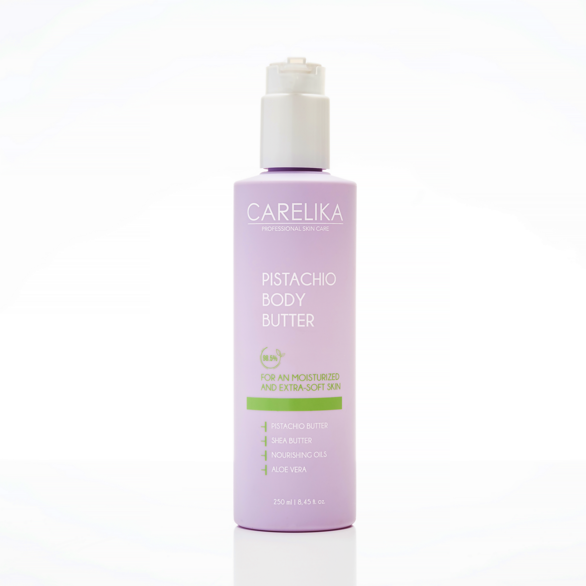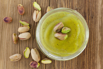 Half butter - half creamy, this melting texture creates a creamy butter to be applied to the whole body. Pistachio butter retains a large fraction of the unsatu- rated free fatty acids found in the oil and therefore provides noticeable advantages to the skin: easily spreads on the skin and penetrates quickly whilst imparting a mat effect. It moisturizes the skin and has nourishing and softening effects.